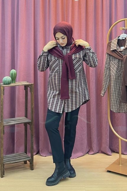 PUANE 745 Ekose Omuzları Sweat Detaylı Gömlek