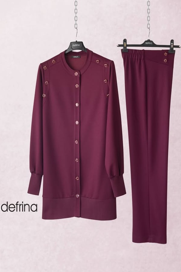 DEFRİNA 61098 overlok dikişli düğmeli pantolonlu takım