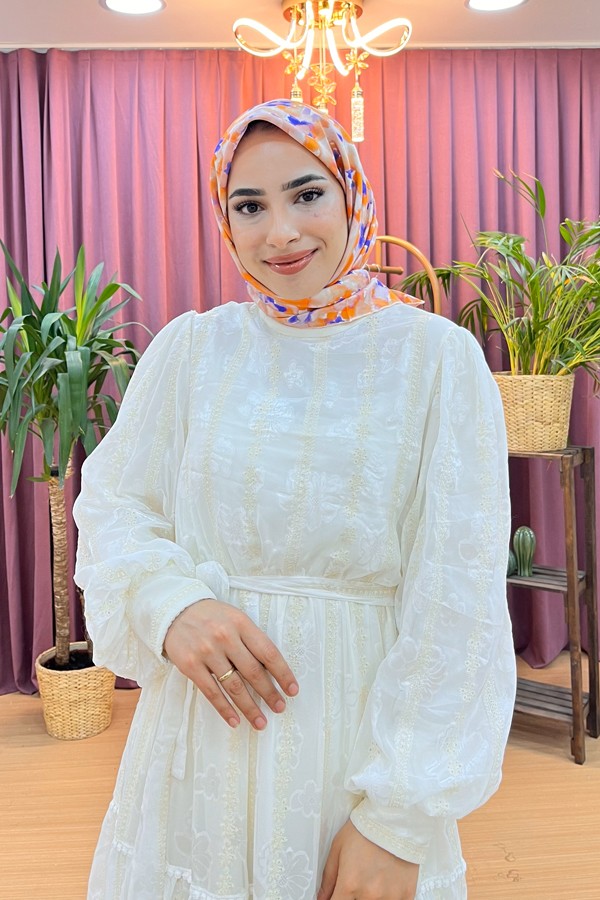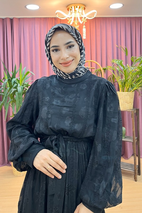 FELEMEZ 1795 terikoton çizgili bağlamalı elbise