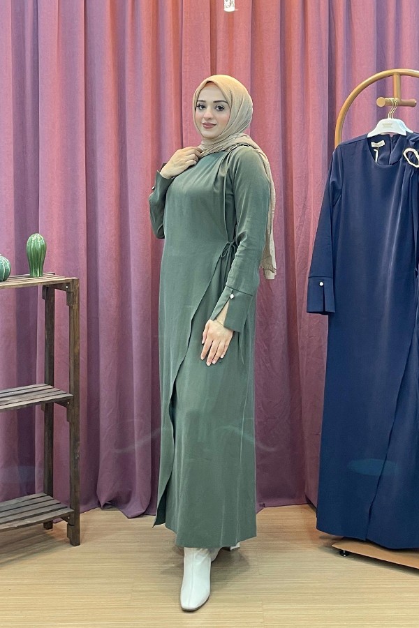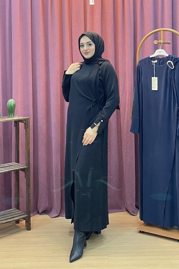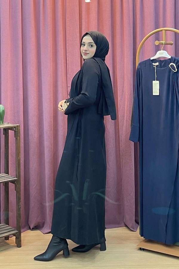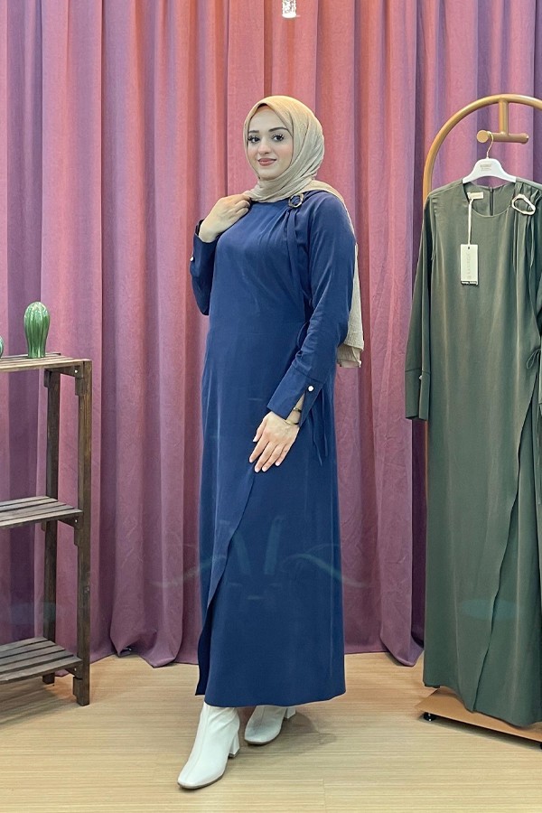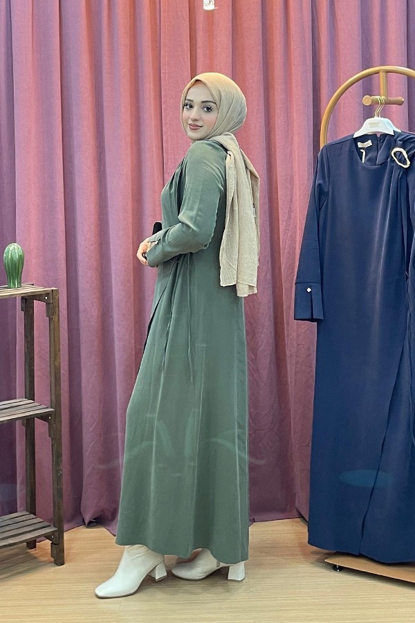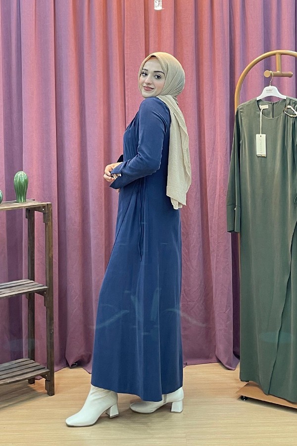 MERİ 6427 beli büzgülü balon kol şifon elbise