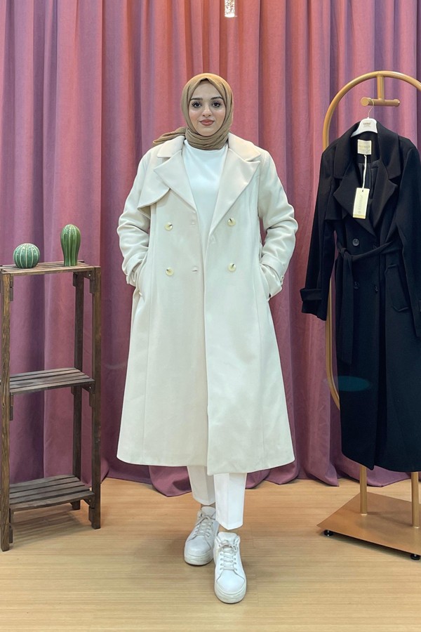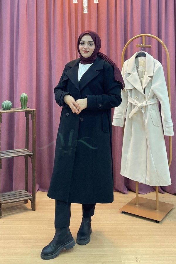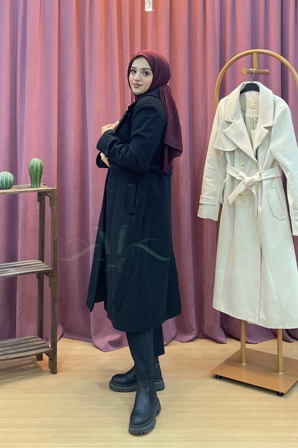 KASIRGA 7542 kuşaklı apoletli kaşe kaban
