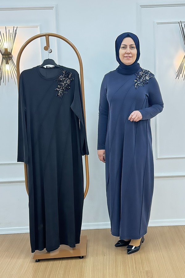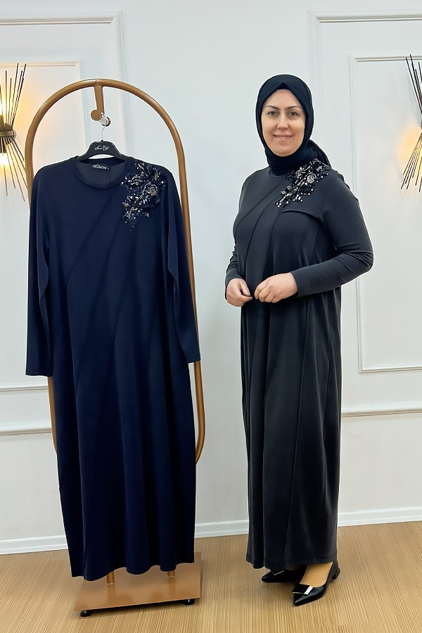 Nurcan Çetin 26126 Yakası Pul Payet ve Boncuk işlemeli elbise
