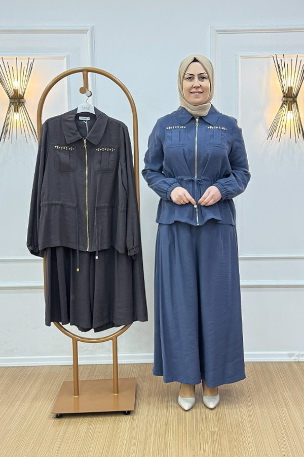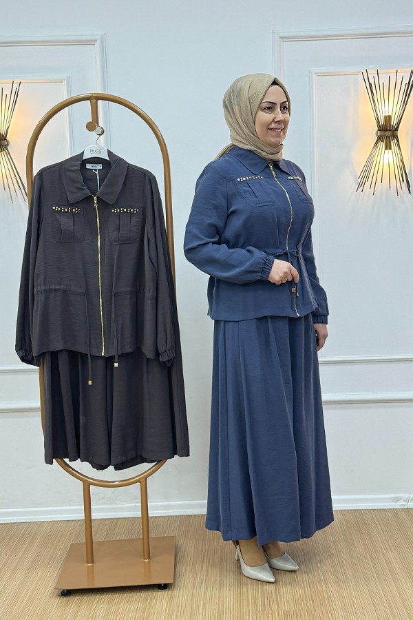 MAGAZİN 7321 cepli düğmeli tensel etekli takım