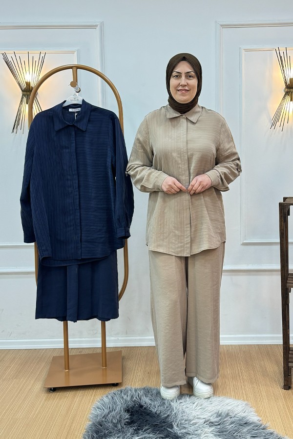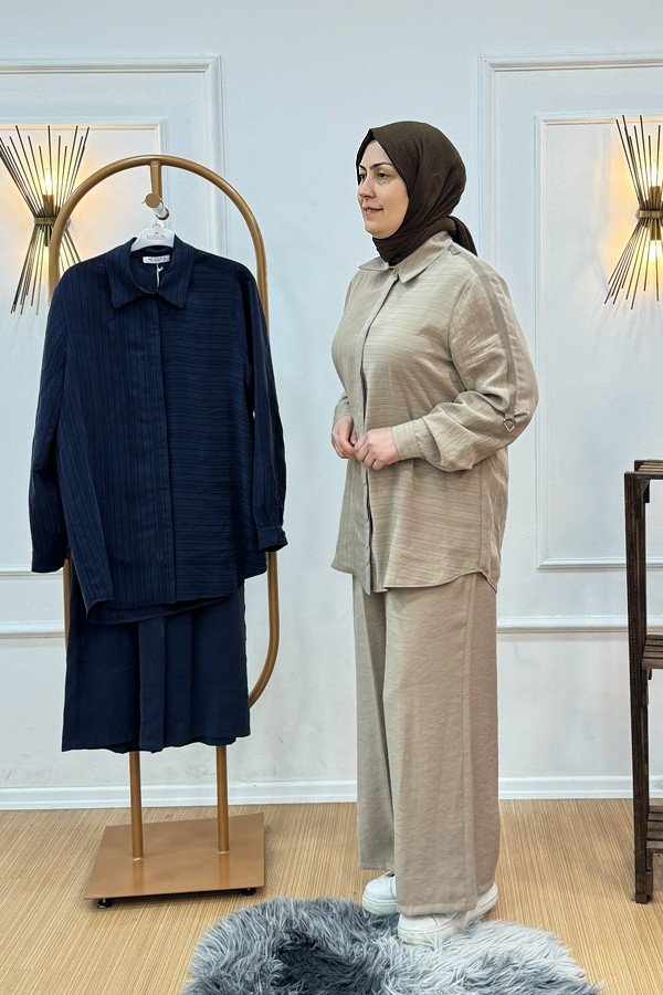 MY312 1568 İnci Detaylı Fermuarlı Triko İkili Takım