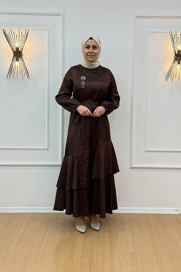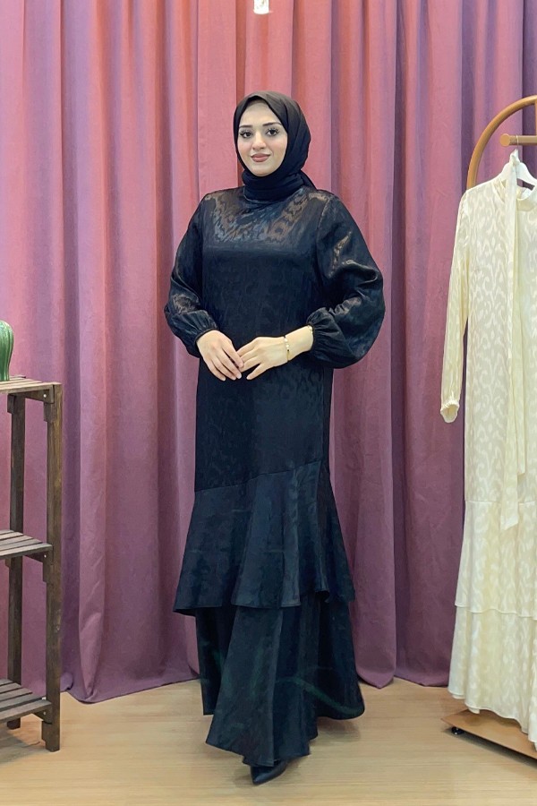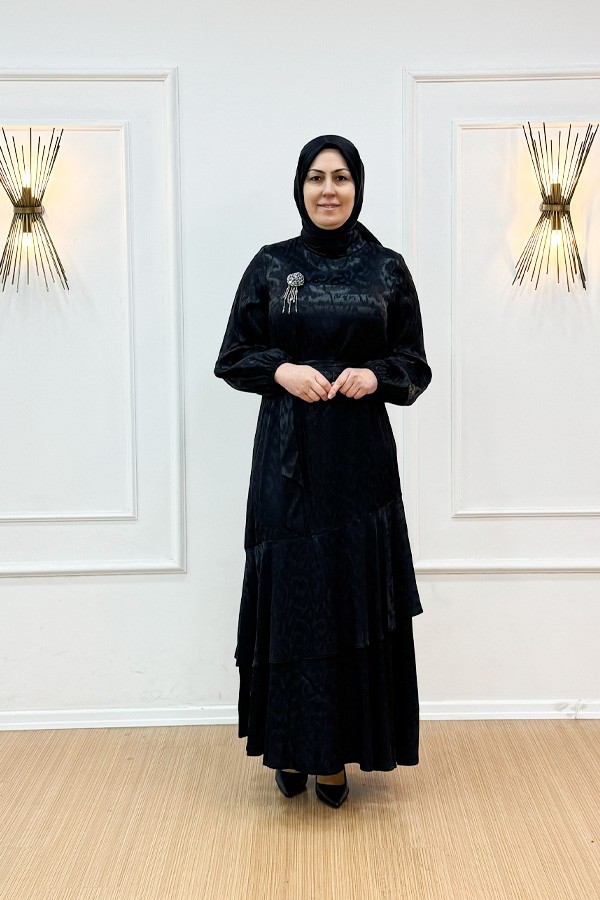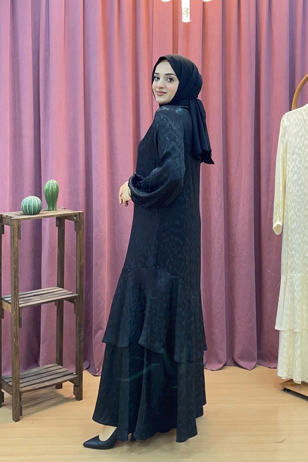 ORHAN 1693 Eteği Volanlı Jakar Elbise