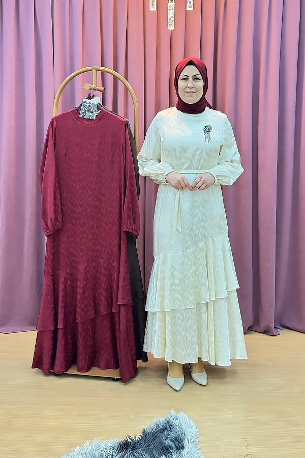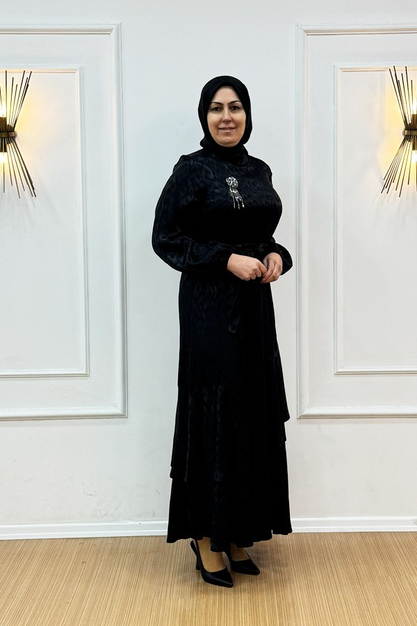 ✨Orhan marka jakar kumaş elbise, kendinden desenli özel dokuması ve kat detaylı eteğiyle asil bir duruş sunuyor. Akıcı formu sayesinde hem şık davetlerde hem özel gün kombinlerinde kusursuz bir tercih.