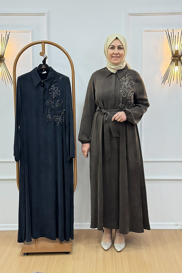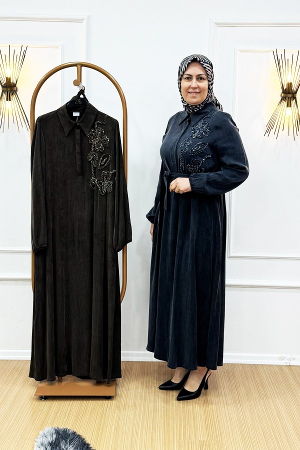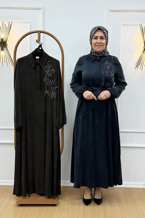Nurcan Çetin 26126 Yakası Pul Payet ve Boncuk işlemeli elbise
