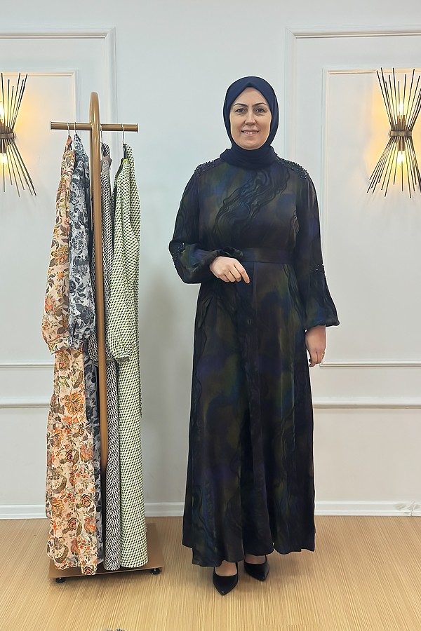 Orhan 1802 Desenli İpek Kupra Elbise