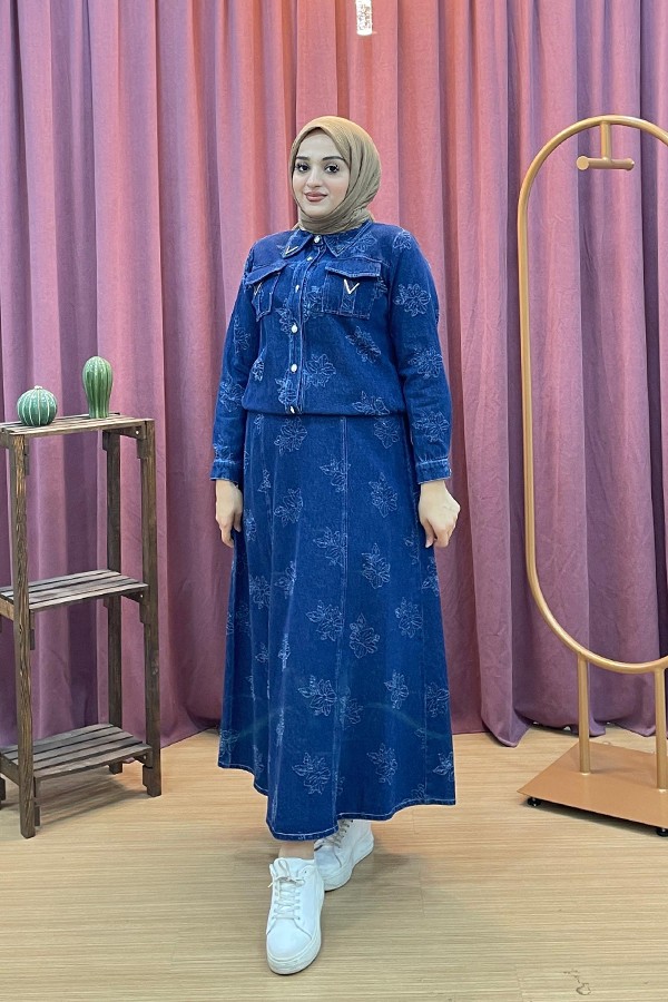MAGAZİN 7321 cepli düğmeli tensel etekli takım