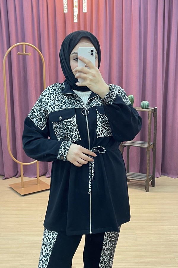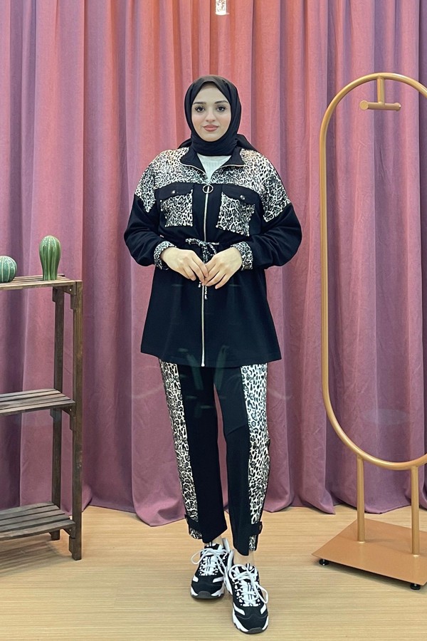 WENNEW 1109 fermuarlı cepli pantolonlu takım