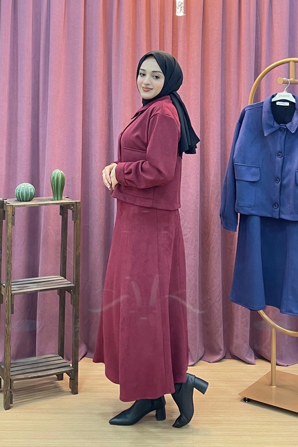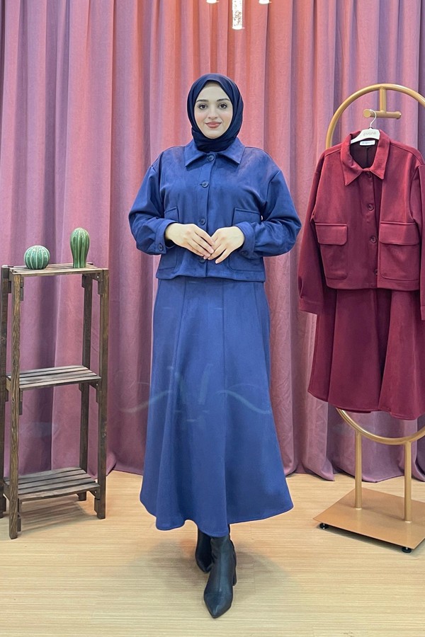 MAGAZİN 7321 cepli düğmeli tensel etekli takım