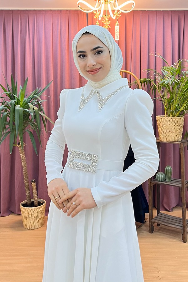 TUAY 4341 yakası ve kemeri taşlı abiye